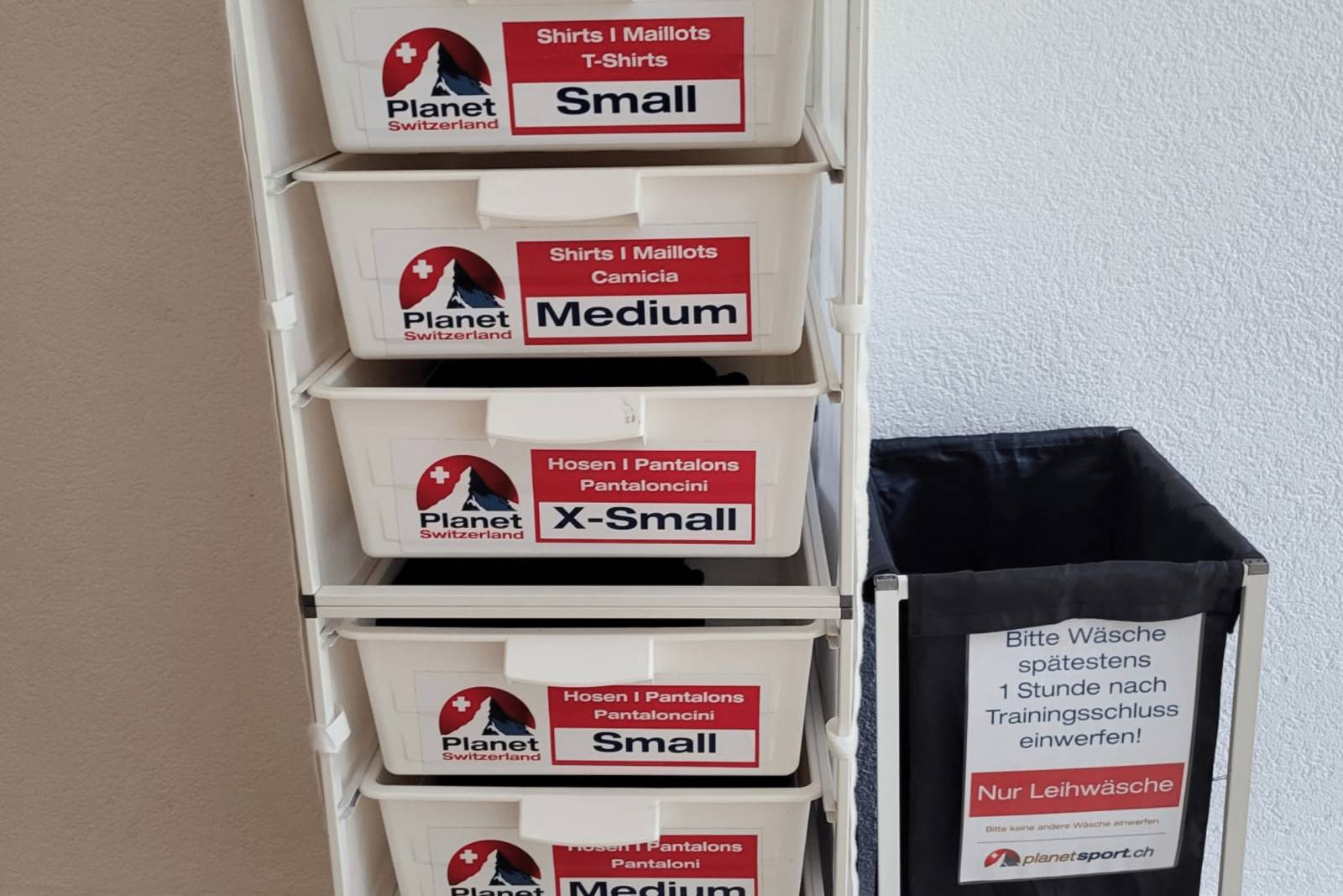 Morgen kommt das Team an, wie ich mich freue! In den letzten Wochen habe ich immer wieder Kontakt mit der Jugendherberge, die die Mannschaft als Unterkunft gewählt hat, und dem Fussballplatz im Sporting Park aufgenommen, um alles zu organisieren. Aber jetzt ist es an der Zeit das gesamte Leihmaterial vorzubereiten. Planetsport versorgt nämlich alle Trainingslager mit Trainingswäsche und Trainingsmaterial. Am Nachmittag gehe ich in unser Lager und bereite folgendes Material vor: 20 Adidas T-Shirts, 20 Adidas Hosen und 20 Adidas Socken sowie 20 Überzieher, alles nach den von den Spielerinnen im Voraus gewählten Grössen. Dann kommt das Fussballmaterial, 20 Adidas Trainingsbälle, 50 Hütchen, 15 Hürden, Koordinationsleiter und Luftkompressor. Da Sie auf Kunstrasen trainieren werden nehme ich die 10 Stangen und das Fussballtennisset nicht mit, auf Naturrasen wäre das auch dabei. Alles ist in meinem Auto bereit. Zum Glück habe ich ein Auto mit genügend Platz :)